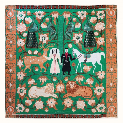 Design of shawl is made on the subject of rituals and celebrations on the night of Ivan Kupala.