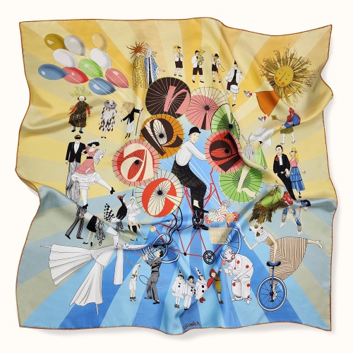 Scarf "CARNIVAL" silk 90x90 on a yellow background