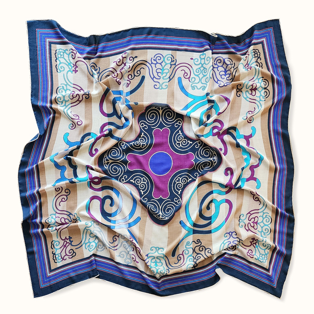 Shawl "NANAI" cashmere 135х135 on biege background
