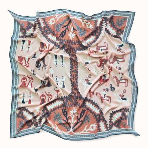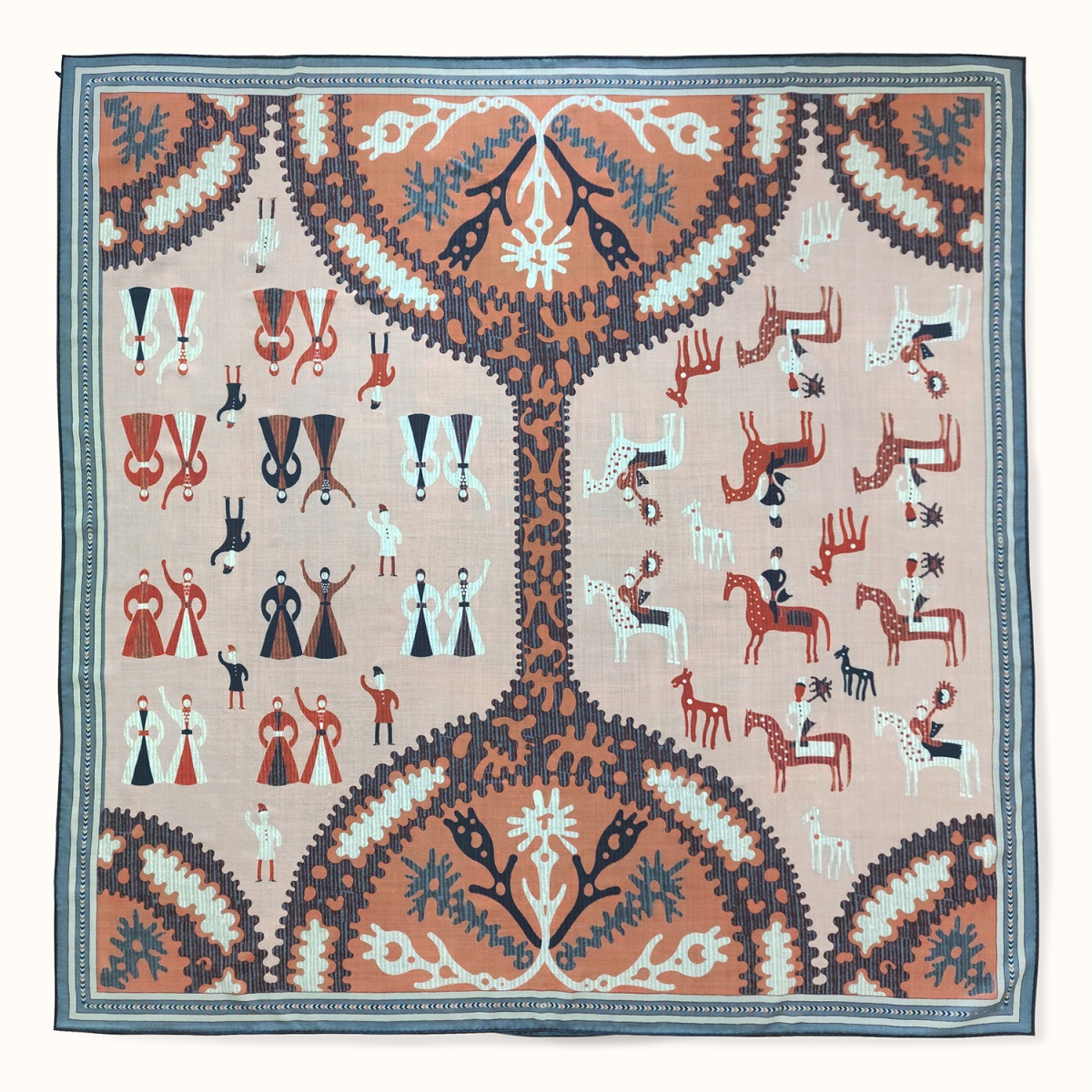 The shawl pattern is inspired by the ancient Kaitag embroideries.