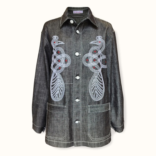 Quick view Джинсовая куртка "ПАВЛИНЫ" Цена 52 000 Р Рисунок выполнен под впечатлением от Индийских рисунков колам. Дизайн и производство: KOKOSHA. Размеры: one size. Материал:100% хлопок.
