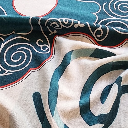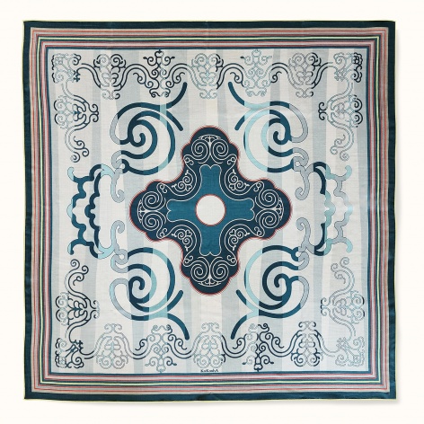 Дизайн шали выполнен по мотивам нанайской одежды и орнаментов.